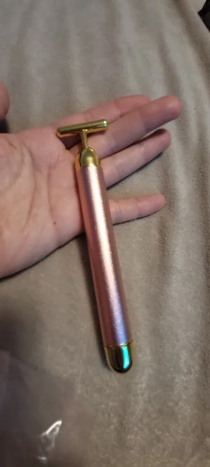 Experience a spa-quality facial massage right at home with our 24K Gold Coloured Energy Beauty Bar. This sleek, T-shaped electric facial roller combines the luxury of gold-coloured plating with gentle, high-frequency sonic vibration (micro-vibration technology) to revitalize your complexion and enhance your skin's natural radiance.